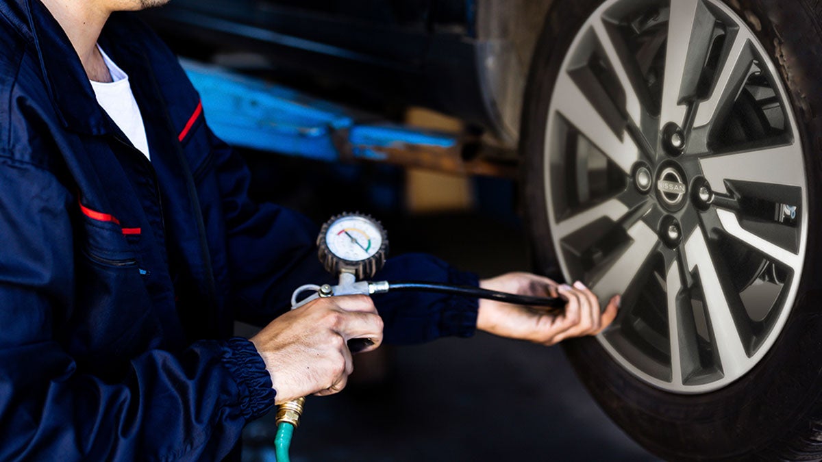 La presión nunca debe ser inferior ni superior a la especificada en el manual de tu Nissan o en la etiqueta ubicada en la puerta del conductor. Verifica la presión de tus llantas al menos una vez al mes o antes de un viaje por carretera.